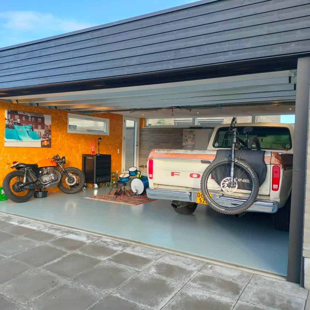 Min gode ven Lasse manglede plads til opbevaring af alle hans køretøjer – og ikke mindst trommesættet, som ikke er så velkomment inde i huset